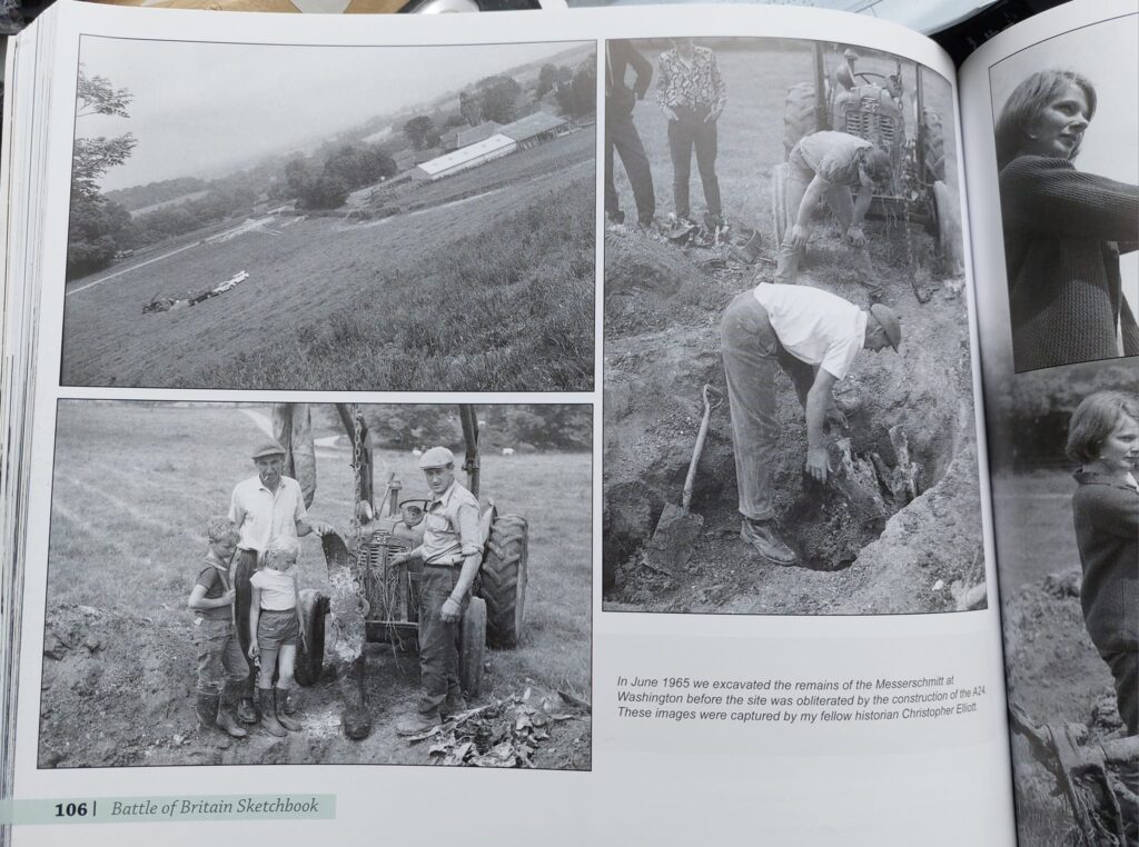 Working mostly by hand, with a tractor to pull out the larger pieces, they found enough to identify the remains as Bf 110C-1 WNr 2837 of III./ZG 76. The crew, Oblt. Florenz and Gefr. Herbert, were listed as missing but lay more deeply buried, along with the aircraft’s engines.
